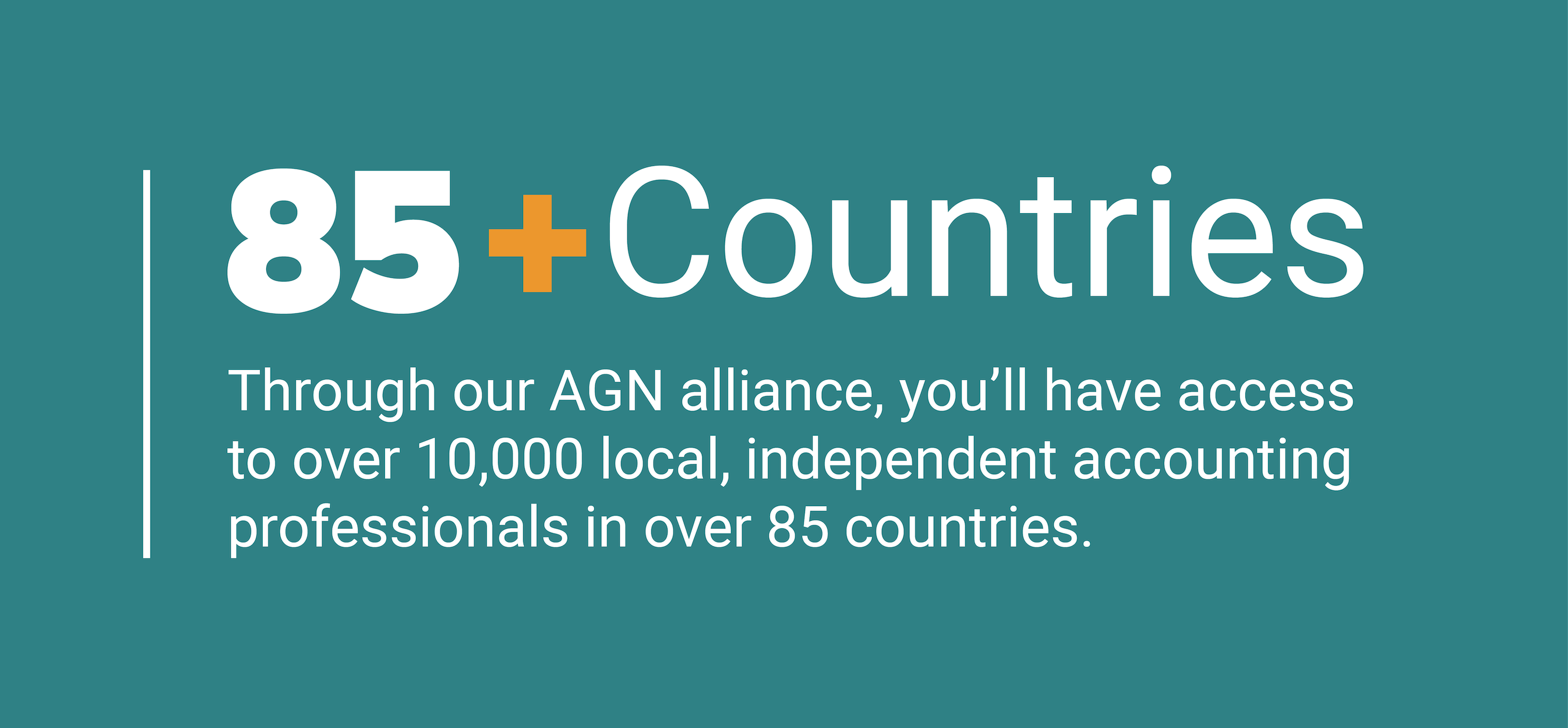 CSH is a founding member of AGN International, a worldwide association of independent accounting and consulting firms located across the globe. Through our membership in AGN, you have access to local, in country resources - with firsthand knowledge of local regulations, customs, and cultures - that offer assurance, tax, and consulting expertise in those markets that you operate.